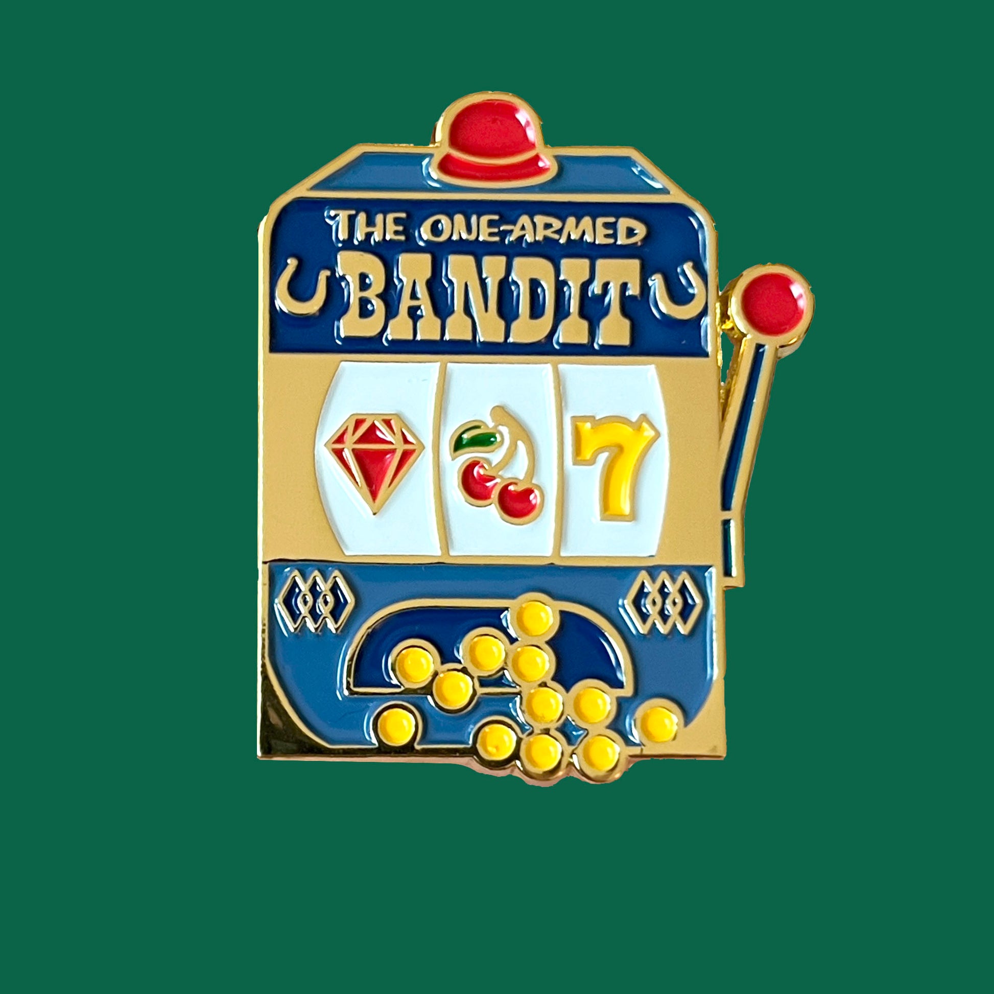 Careful, this one armed bandit slot machine pin might steal your money!!